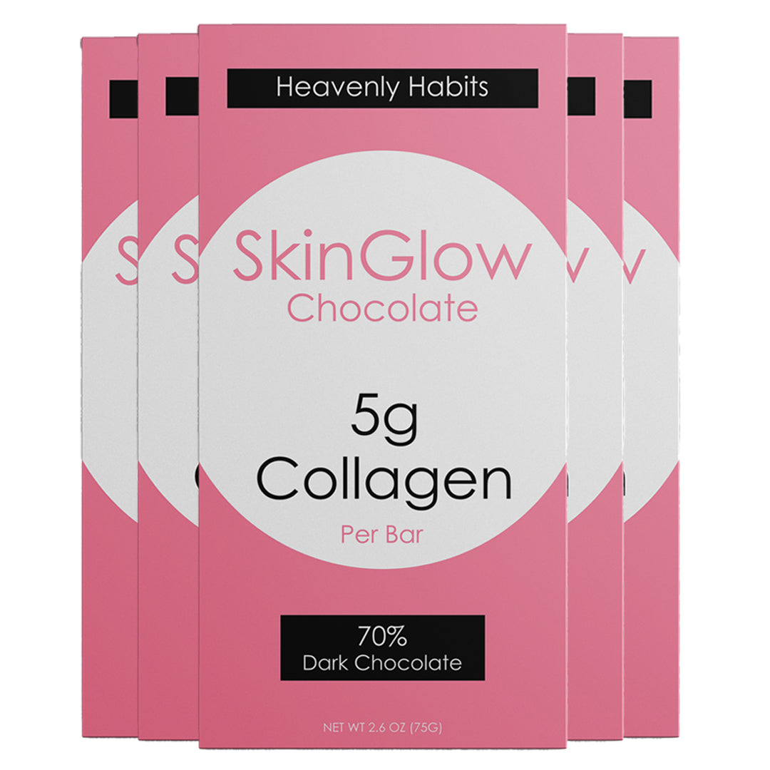 5-Pack: Dark Chocolate bars infused with collage peptides for beautiful and glowing skin.